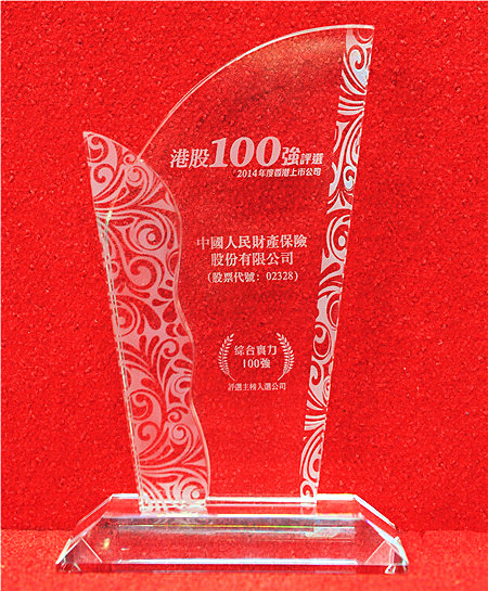 2015年1月,2014年度「港股100强」获奖名单在香港正式揭晓,中国人保财险再次成功荣登本次「港股100强」评选活动的主榜榜单,位列「港股100强」“综合实力100强”第44名。