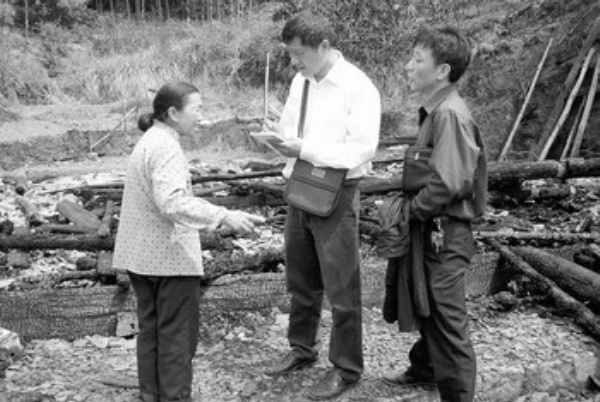4月16日,星期四。曹树志按事先确定的日程,起早赶往山坳中的新桥乡岭下村,回访前段时间因火灾理赔的20多家农户。曹树志带上的还是那五样必备的工作用品:手机、照相机、记录本、通讯录和老花眼镜。