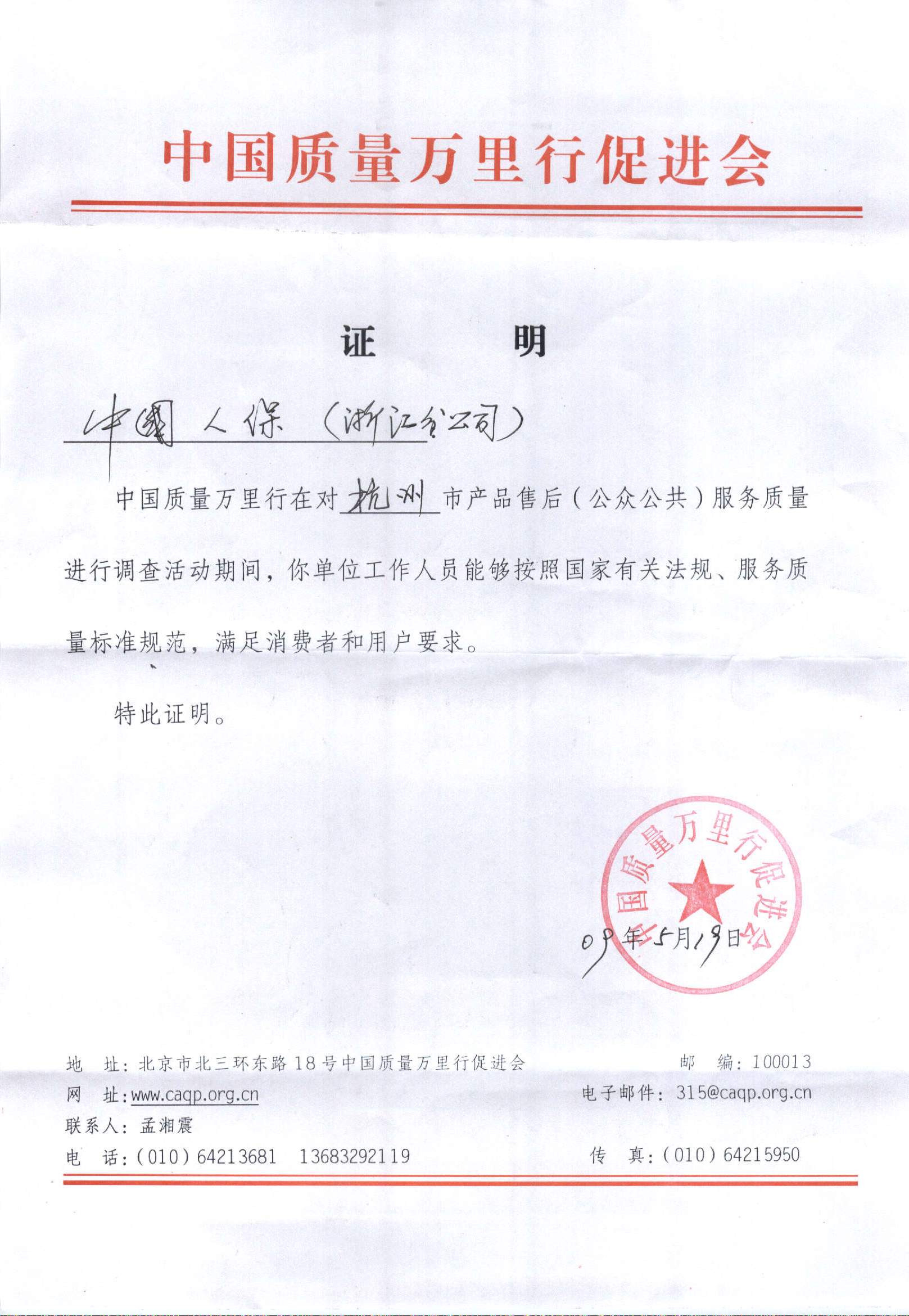 中国质量万里行促进会是我国第一个跨行业、跨地区,切实代表老百姓,长期进行服务质量查访的机构,具有较高的社会影响力。此次暗访主要围绕服务态度、业务知识、受理流程,投诉处理机制等具体表现,进行等级评价。调查组以及随行媒体对我公司95518客户服务人员、查勘人员周到快捷的服务表示满意,询问了我司服务承诺、查勘流程等方面的情况,出具了优质服务证明书。