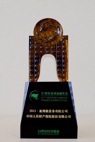 年12月5日,21世纪亚洲金融年会暨“2013亚洲银行/保险竞争力排名研究报告”发布仪式在京举行。中国人民财产保险股份有限公司(下称“人保财险”)在2013亚洲保险竞争力排名研究中排名第一,荣获“2013亚洲最佳非寿险公司”大奖。